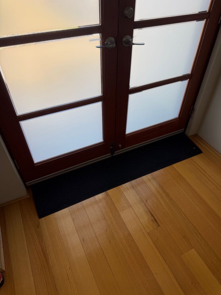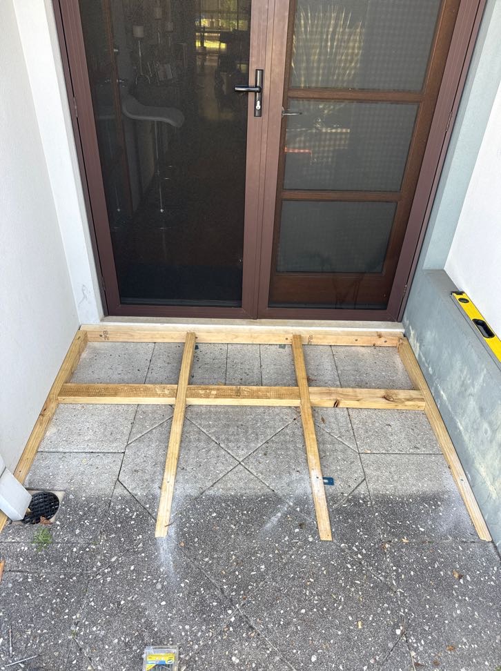 Outside, we designed and installed a custom 1:12 timber ramp, finished with a durable marine‑ply grip surface to provide stability in all weather conditions. Inside, the transition is completed with a 1:10 rubber ramp, creating a smooth, seamless flow between levels without compromising the look or usability of the space.